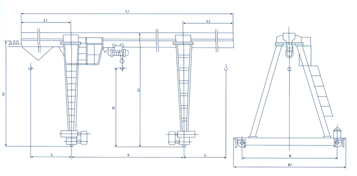 本機是與CD1或MD1型電動葫蘆配套使用,適合于露天作業(yè)的固定跨間,本機禁止吊運易燃易爆物品,根據(jù)用戶要求還可制成單端外伸懸臂式或無懸臂式結構。